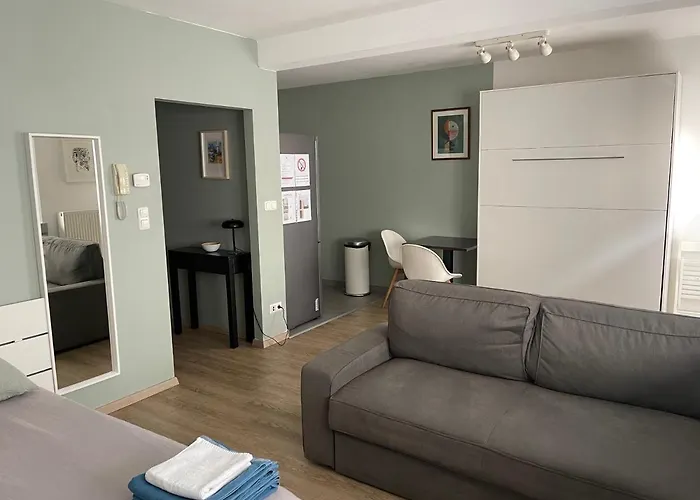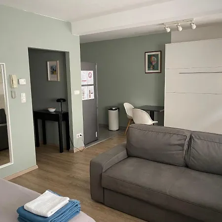 Studio Close From Train Station And Shopsアパ-トメントには,器具でいっぱいの台所,薄型テレビ,コ-ヒ-/紅茶メ-カ-とライティングデスク付きの客室があります. 憲法広場まで1キロ,アム・トンネルまで1.1キロのアパ-トメントです.